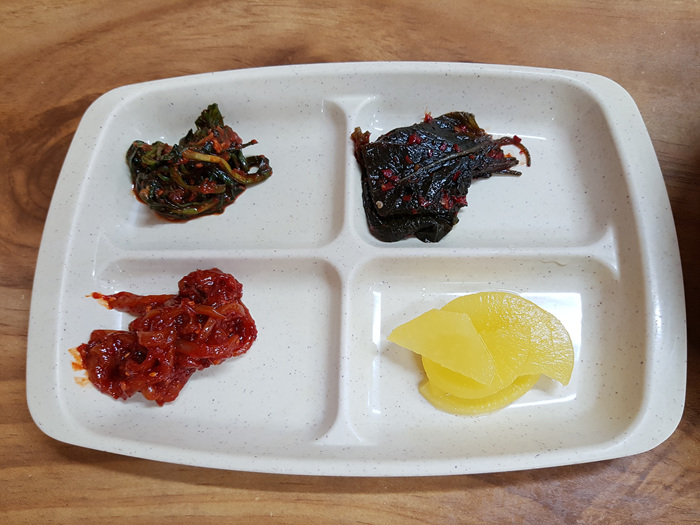 반찬은 4가지 정도 있습니다. 먹고 싶은만큼 가져다 먹으면 됩니다.