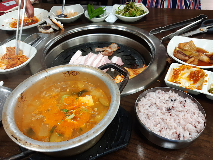 된장찌개에 고기도 듬뿍 들어 있습니다. 물론 맛도 좋아 배가 불러도 밥 한그릇 뚝딱하게 만드는 묘한 매력이 있었습니다. 제주도라고 하면 음식점에서 먹는 고기가 비싸다라는 편견이 있는데 그 편견을 싹 갈아 엎는 그런 음식점이었습니다.
