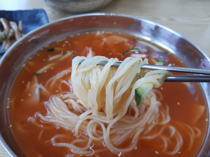일찍 찾아 온 무더위... 이젠 시원한 밀면이 댕기는 계절이 되었네요. 시원한 밀면 한 그릇 뚝딱하니 더위 좀 날려 버린 것 같습니다. 공항과 그리 멀지 않고 동문시장도 멀지 않기에 관광객들은 한 번 들리시면 후회하지 않을 듯 하네요.