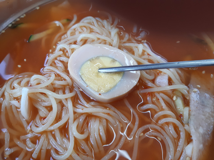달걀 삶은 것도 시중에 밀면집과 달리 구운달걀이 나옵니다.