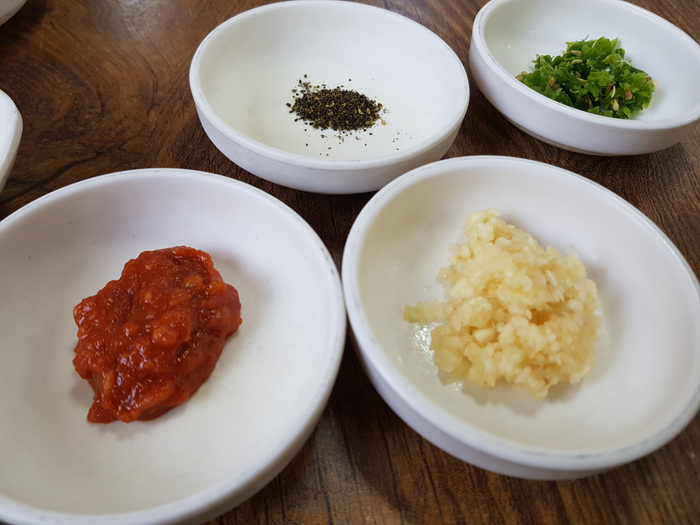 다진마늘, 다진땡초 그리고 산초가루, 들깨가루를 넣어 먹으면 정말 맛있습니다.