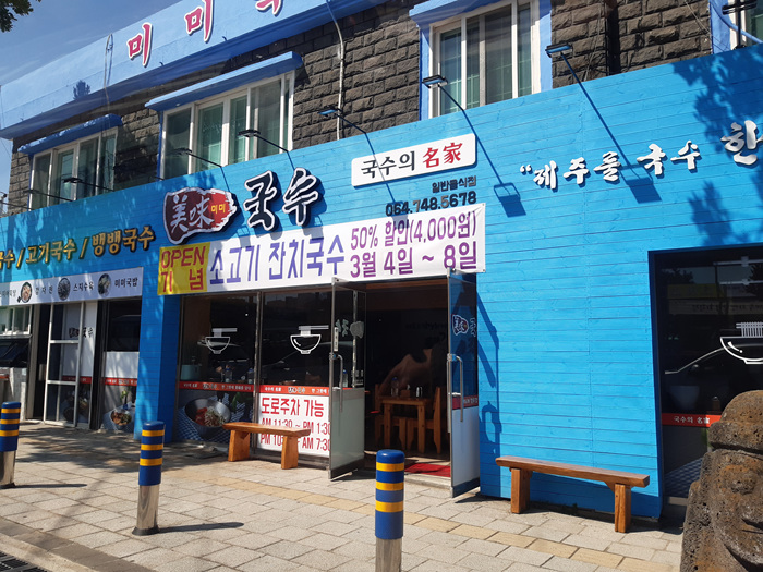 제주도에서 제일 많이 먹는 음식 중에 하나가 바로 국수도 포함되지 않을까하는 생각을 해 봅니다. 자매국수처럼 쫄면 형식의 비빔국수에 돼지고기 수육을 올려 주는 것이 유명해 더 그런지도 모르겠네요. 오늘은 제주도에서 처음 먹어 본 소고기 잔치국수를 먹어 본 후기 적어 봅니다. 오픈 기념으로 소고기 잔치국수가 50% 할인된 가격으로 먹을 수 있다고 해 가 봤습니다.