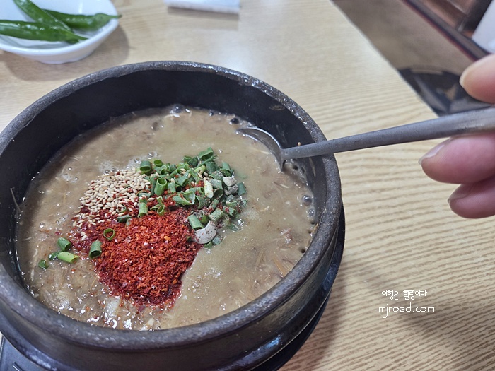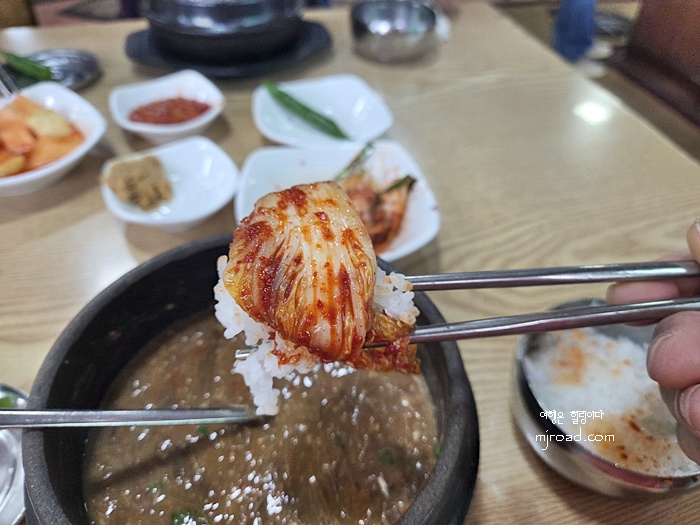 고사리육개장은 푹 고은 고사리와 고기를 갈아 놓은 듯 걸죽하다. 육지에서 오는 분들은 조금 당황할 맛이기도 하지만 한 번 맛보면 마파람에 게눈 감추듯 먹게 되는 묘한 중독성이 있다. 걸죽한 맛을 좋아하는 분들은 이곳 추천한다. 사진으로 찍어서 양이 별로 없다는 생각이 들지도 모르지만 뚝배기가 제법 커서 한 끼 식사로 손색이 없다.