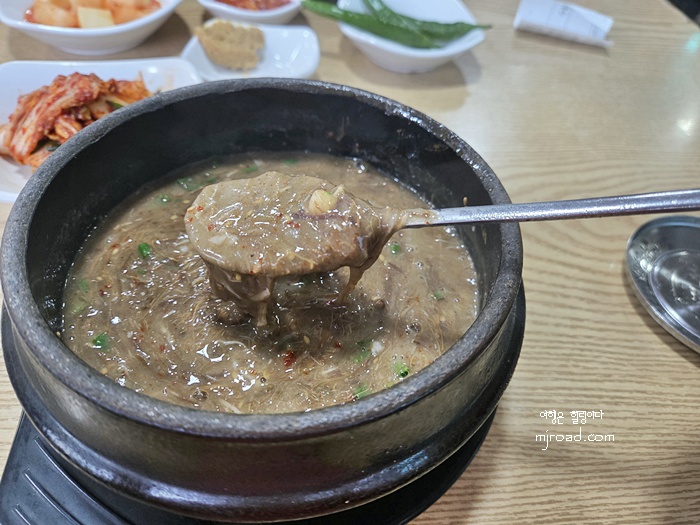 이곳은 고사리육개장 뿐만 아니라 제주도 향토음식 몸국도 있는데 그것도 맛보면 제주도 한끼를 제대로 느끼지 않을까싶다. 육개장, 몸국등 고깃국물을 별로 즐기지 않는 분들은 녹두빈대떡도 있으니 가족 나들이로 제주도 여행한다면 여러가지 주문해서 맛보는 것을 권한다. 한 번 맛보면 참 특이하다고 기억할 고사리육개장 친구와의 아침 한끼에 흡족했던 날이다.