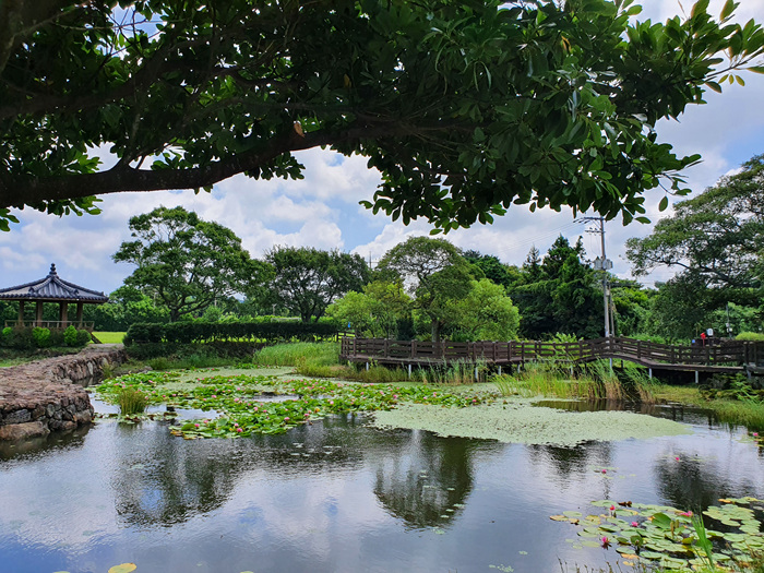 제주도는 천혜의 자연환경으로 되어 있는 섬이다 보니 어딜가나 아름다운 곳이 많습니다. 하지만 유명한 곳이면 어김없이 많은 사람들로 북적이기 마련이죠. 그렇다고 사람없는 곳을 다니기도 좀 그렇고... 오늘은 여행 중 정말 우연히 발견한 한 장소를 소개할까합니다. 제주도에서 유명한 비자림으로 향하던 길이었지요. 지나가는 길에 어찌나 연못이 아름다운지 마치 육지에서 보던 그런 고즈넉한 풍경을 마주했답니다.