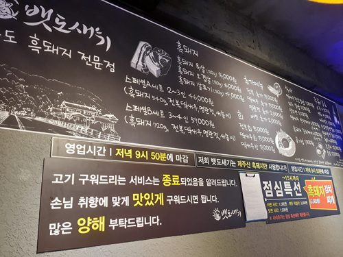 참고로 이곳은 흑돼지 전문점입니다. 점심특선외에 고기도 따로 주문해 드실수 있습니다.