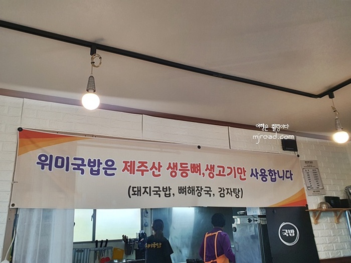 제주도는 해장국이나 국밥 문화가 많이 발달되어 있다. 그렇다보니 제주시는 기본이고 한적한 시골에서도 심심찮게 해장국이나 국밥 간판을 내걸고 장사를 하시는 분들이 많다. 얼마전 서귀포의 한적한 시골에 위치한 한 국밥집을 갔는데 제주국밥이 있어서 한 번 먹어 보기로 했다. 이곳에선 해장국 뿐만 아니라 돼지국밥도 있다. 보통 돼지국밥이라고 하면 부산이 떠 오르는데 제주도에 돼지국밥은 어떨지도 궁금했는지 모른다.