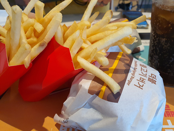 더블 불고기 버거 세트를 두 개를 주문했습니다. 다른 곳보다 개인적으로 이곳이 더 맛있는 이유는 잘 모르겠지만 그래도 갈때마다 양도 더 푸짐한 느낌이고 감자도 바삭하니 양도 푸짐해 괜찮았던 것 같아요.