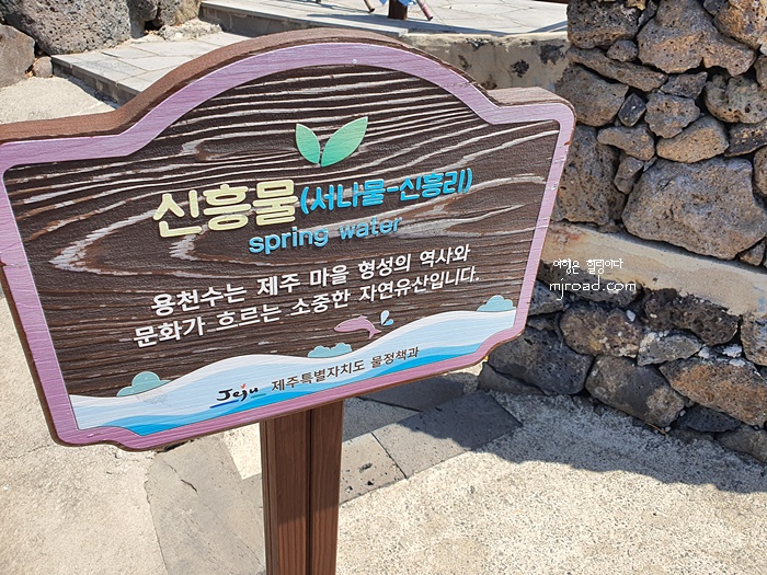 쇠물깍 바로 옆에 위치한 신흥물 (신나물-신흥리)는 제주 마을 형성의 역사와 문화가 흐르는소중한 자연유산이라고 적혀 있다. 아래 까지는 내려 가 보지 못했지만 보는 것만으로도 충분히 그 가치를 느낄 수 있었던 것 같다.