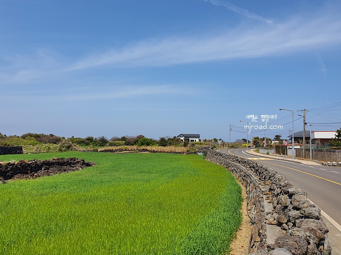 신흥리 해변에서 신흥리 마을까지 걸어 보니 봄이 많이 무르 익고 있었다. 산들산들 불어 오는 봄 바람에 청보리가 움직이는 모습을 보니 가파도 청보리가 생각난다. 이맘때가 제일 이쁘다는데 시간이 허락될때 가파도에 한 번 가보고 싶다는 생각이 많은 든 하루다. 한 시간 동안의 뚜벅이 여행객으로 걸어 보니 제주도는 참 살기 좋은 곳이구나! 하는 생각을 새삼 더 하게 되었다.