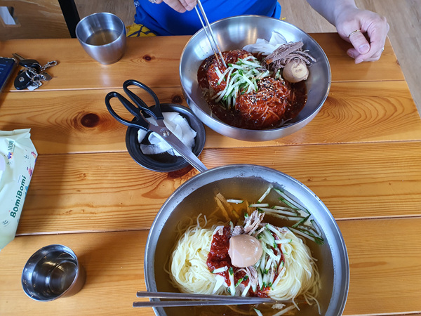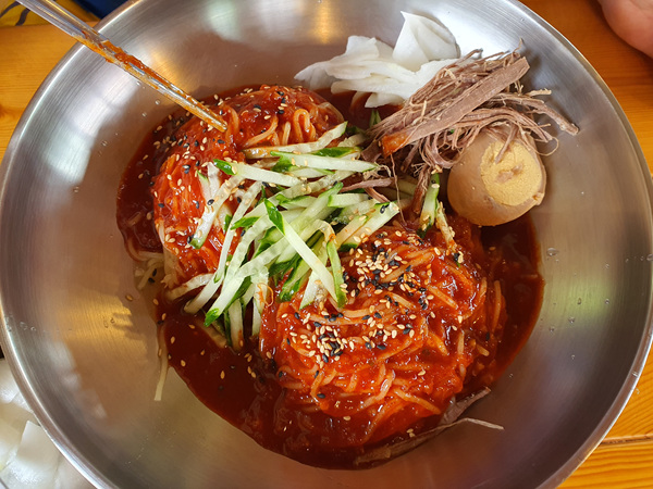 육지에서 자주 먹었던 시원한 밀면을 이곳 제주도에서 맛볼수 있어 너무 좋다. 물론 육수라든가 그맛은 차이가 좀 나긴 하지만 그래도 추억 음식이라 그것으로 만족하고 먹는다.