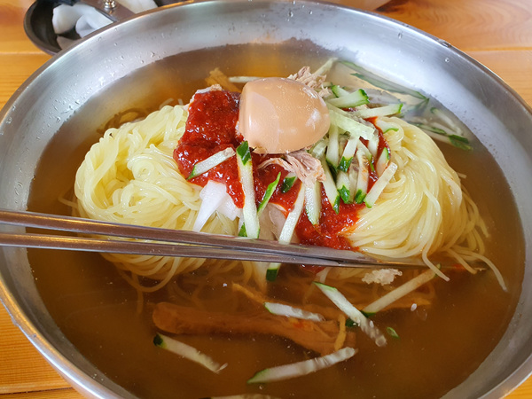 조금 다르다면 밀면 보통이나 곱배기 양 가격이 같다는 것이다. 개인의 먹는 기준에 따라 주문하면 되는 참 괜찮은 음식점이었다.