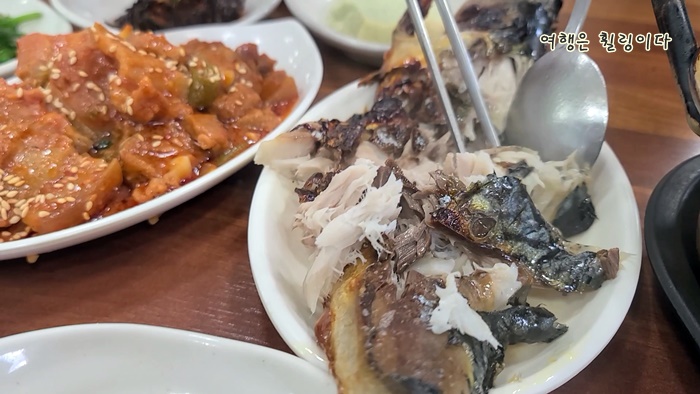 고등어는 염지를 잘 해서 완전 입에서 살살 녹아요. 기름기 쫙 뺀 고등어구이 그냥 밥이랑만 먹어도 한 그릇 뚝딱하게 만듭니다. 같이 나오는 제육볶음은 비계가 생각보다 많아 조금 니글거리긴 했지만 워낙 다른 반찬이 많이 나와 부족하다는 생각은 하지 못했어요.