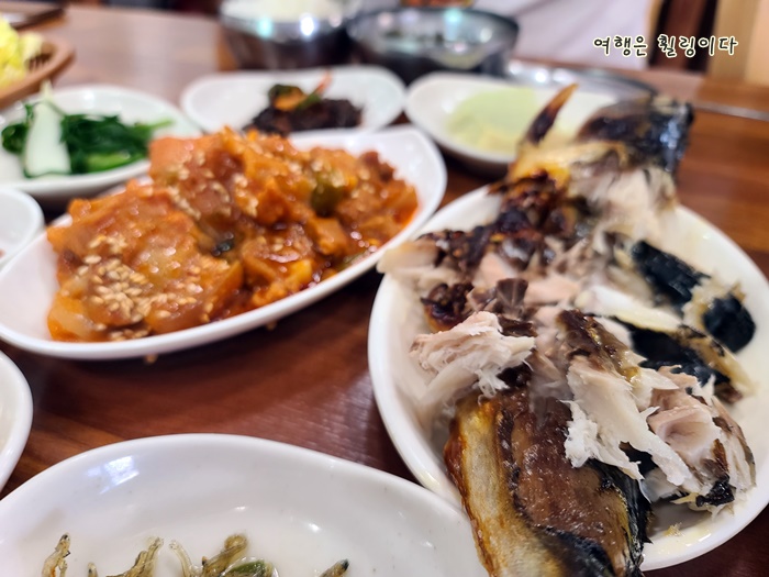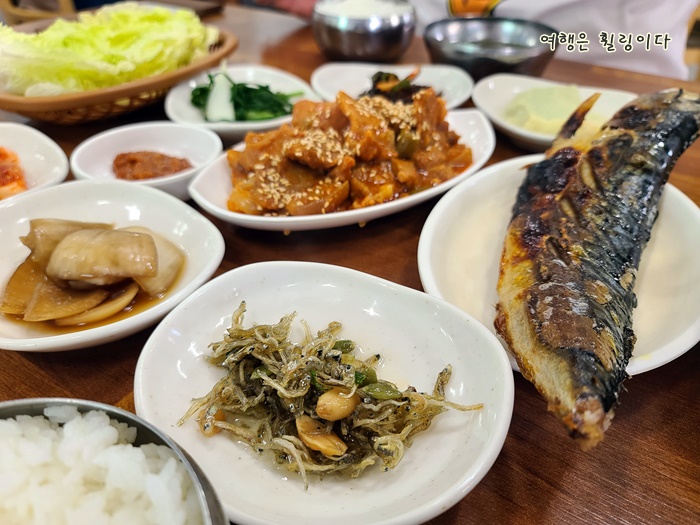 보통 기본 정식으로 나오는 것은 각종 반찬과 제육볶음 그리고 고등어구이인데 일부러 정식 2개 시킬 필요는 없더라고요. 김치찌개와 정식 하나씩 주문해도 나오는 기본 반찬은 같고요. 오히려 김치찌개 양이 많아 같이 나눠 먹기 좋았습니다. 처음 가시는 분들은 참고하시면 푸짐한 한 상을 드실 수 있을거예요.