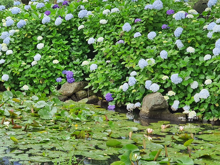연꽃도 많이 피었는데 활짝 핀 6월 말에는 아마도 절정이지 않을까싶다. 수국과 연꽃의 조화 다른 곳에는 볼 수 없는 매력이었다.