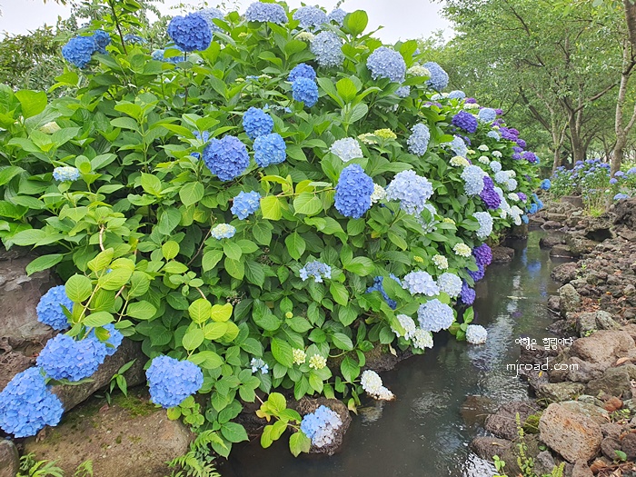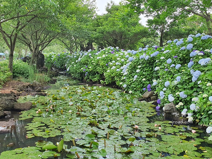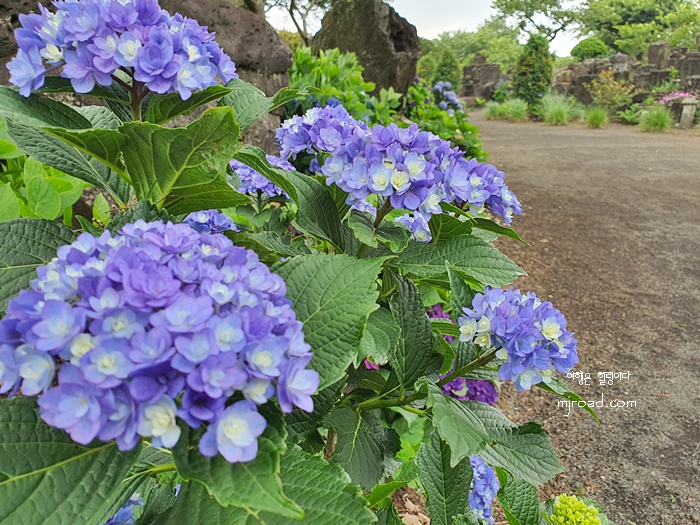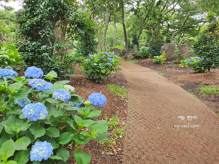 다양한 색과 다양한 종류의 수국들을 6월~ 7월 초에 만날 수 있고 7월에는 목수국까지 만날 수 있어 지금이 수국을 보기에 최적의 시기라 하겠다. 중산간에 위치해 있어 기온도 해안가 보다는 선선해 걷기도 좋다.