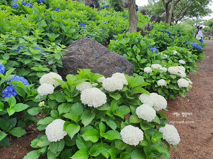 다양한 색과 다양한 종류의 수국들을 6월~ 7월 초에 만날 수 있고 7월에는 목수국까지 만날 수 있어 지금이 수국을 보기에 최적의 시기라 하겠다. 중산간에 위치해 있어 기온도 해안가 보다는 선선해 걷기도 좋다.