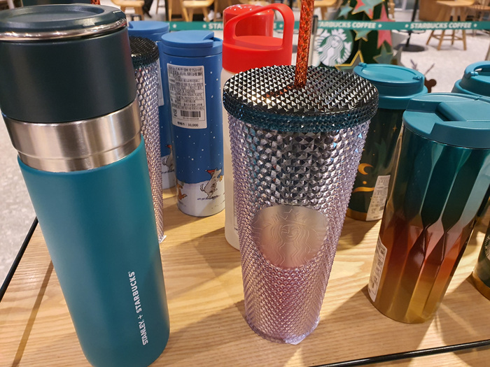 특히 크리스마스를 겨냥한 굿즈는 하나쯤 사오고 싶을 정도로 눈에 확 띄고 이쁘더라고요. 그런데 생각했던 것 보다 가격대가 조금 비싼 느낌이 들어 살까말까 고민을 많이 했더랬죠. 하지만 다음날 지나는 길에 텀블러 하나 구입했지만요..