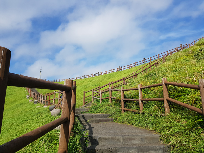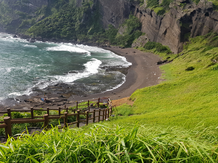 전 푸르름이 가득한 날 다녀 왔는데요. 바닷가 근처라 정말 바람이 장난 아니게 불어서 걷기 힘들었지만 멋진 자연 환경에 넋을 놓고 구경했답니다. 일출봉 정상까지는 약 30분 정도 소요 되고 그 위에서 내려다 보는 풍경 또한 절경입니다.