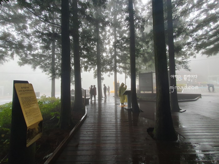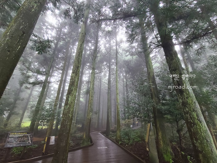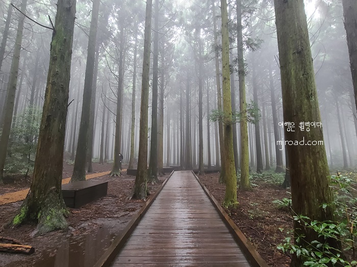 비가 오는 제주도이지만 이곳은 오히려 사람들로 북적이는 관광명소가 있다. 그곳은 바로 제주도 대표 숲길인 사려니숲길이다. 비가 오는 날엔 오히려 오롯이 빗소리를 들으며 걷기도 좋고 무엇보다도 피톤치드 향이 그윽해 심신이 안정이 되는 그런 곳이라 많은 사람들로부터 사랑을 받는 곳이다.