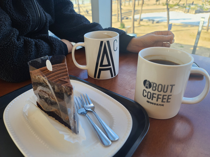 제주도 커피숍에 가면 커피 가격이 많이 비싸서 부담스럽다는 분들이 많이 계신다. 물론 그런곳도 적잖은 것이 현실이기도 하다. 커피 맛도 사실 중요하긴 하지만 여행 중 잠시 쉬어 갈 상황이라면 함덕 해수욕장 바로 앞에 위치한 에이바우트 커피숍 추천해 본다. 커피, 디저트 맛은 다른 유명한 커피숍 보다 조금 차이가 나긴 하지만 그래도 커피숍에서 바라 보는 풍경 하나는 일품이라고 감히 말하고 싶다.