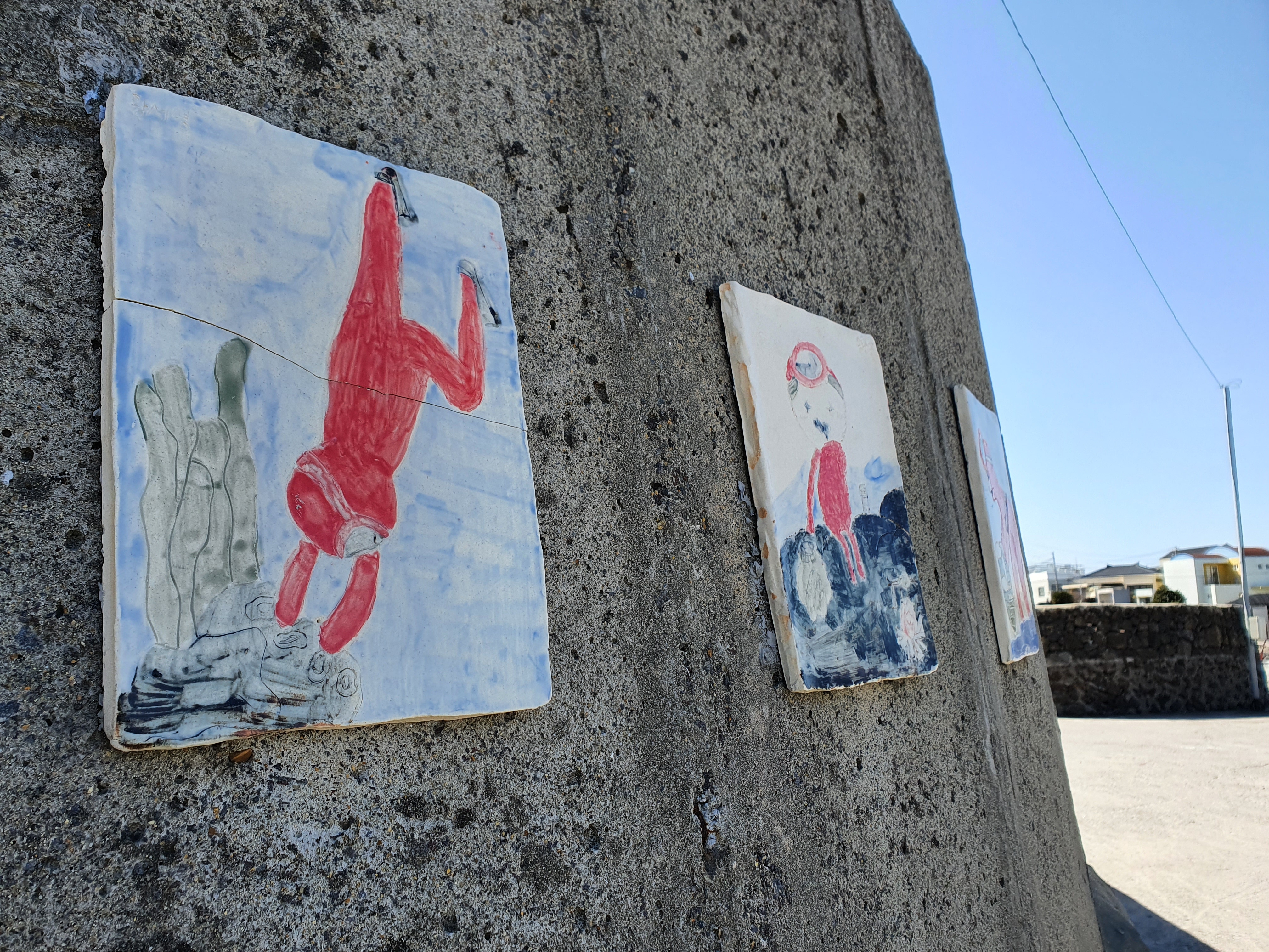 아이들이 직접 그린 듯한 그림을 타일로 만들어 어촌 마을 곳곳에 붙여 놓았더군요.