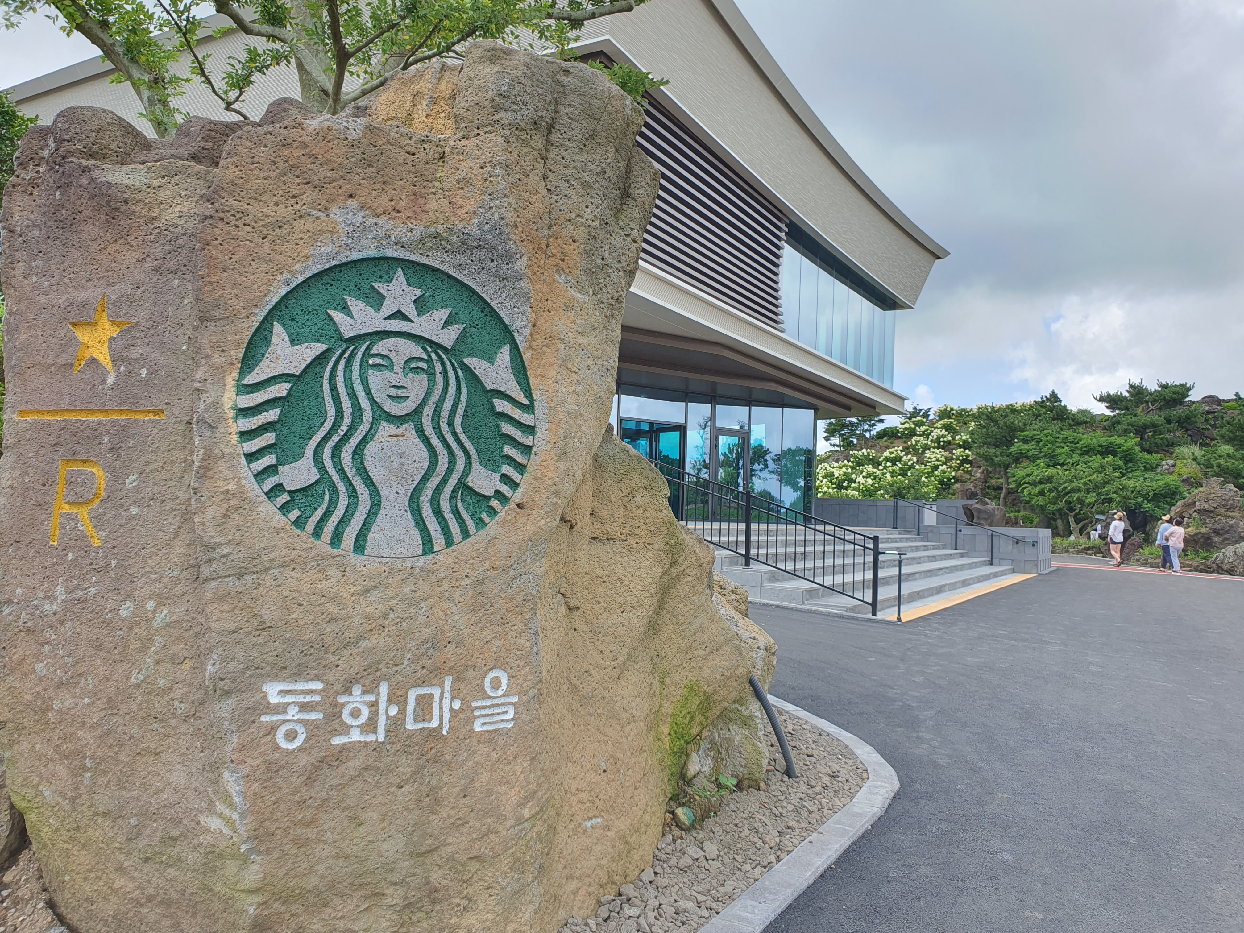 주차장 바로 앞에 스타벅스 로고와 동화마을이라고 적혀 쉽게 수국명소로 향할 수 있었다. 간간히 제주도민들이 구경하러 가는 모습이 포착되었다. 보통 유명한 공원이나 대형카페, 명소가 오픈하기 전 미리 도민들이 먼저 가서 무료로 관람 가능하도록 SNS에 공지를 하기도 하고 사람들의 입소문으로 가기도 한다. 섬이라는 특성상 뭔가 하나가 생기면 알려지는 건 시간문제다.