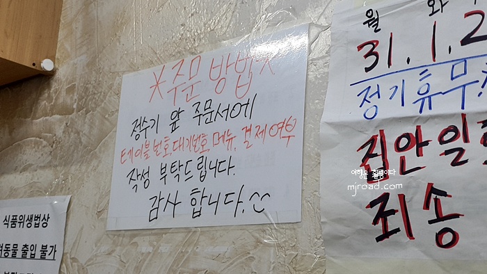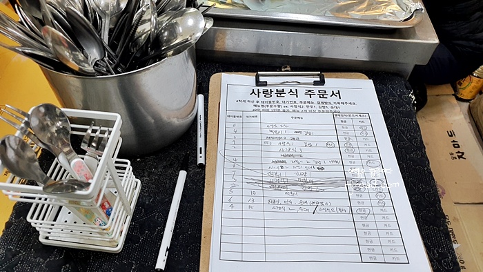 주문 방법이 재밌다. 손님이 직접 주문서에 테이블 번호, 대기 번호, 메뉴 그리고 결제 여부를 작성하여야 한다. 결제 여부를 왜 적을까? 조금 생각하게 만드는 부분이다. 혹시 현금이 아니라 카드면 양이 적게 나오나? 하는 아니한 생각도 사실 들었지만 그건 아닐거라 믿는다.