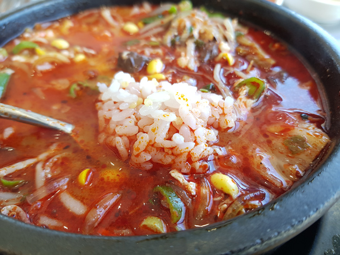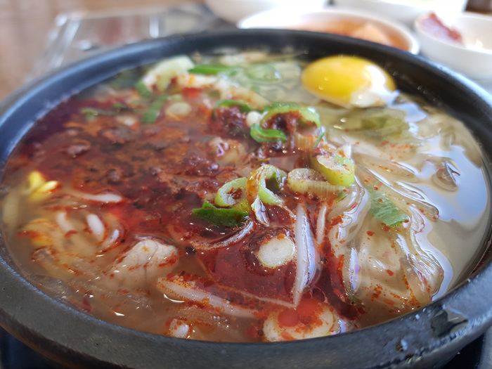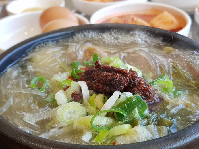 팔팔 끓는 해장국에 날걀걀 하나 풀면 이만한 해장국이 없습니다. 맛도 유명 해장국집과 비슷합니다.