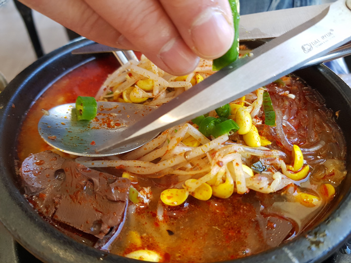 해장국에 땡초도 몇 개 썰어 넣어 먹으면 정말 매콤하니 맛있습니다. 매콤한거 좋아 하신다면 땡초 한 번 넣어 드셔 보세요. 완전 맛있습니다.