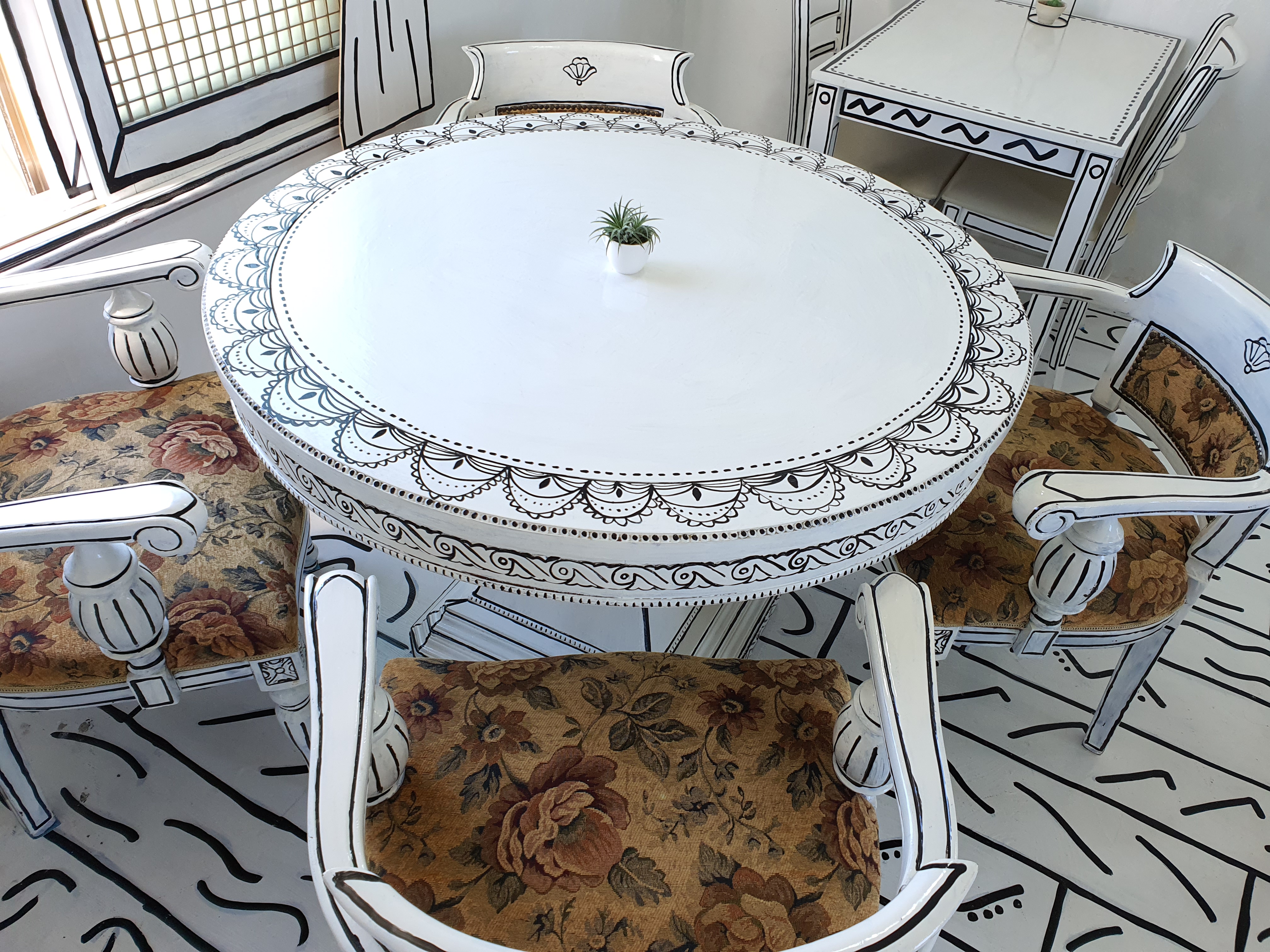 테이블도 직접 디자인하고 그렸다는데 믿기지 않더라고요.