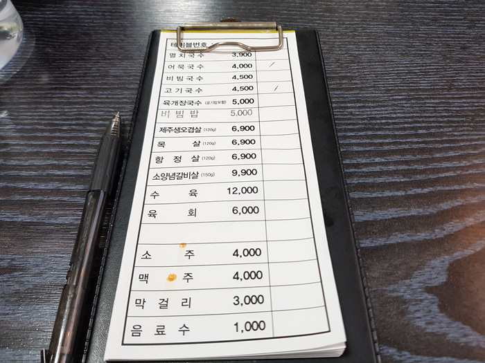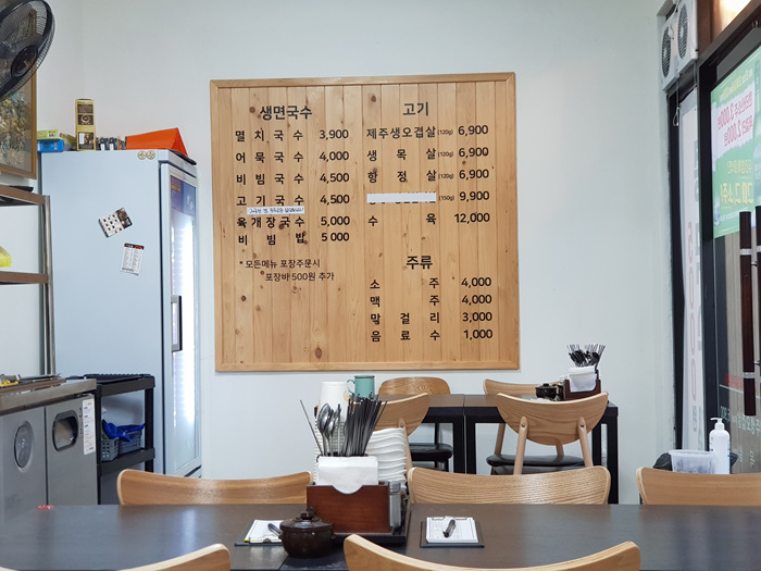 메뉴판을 보면 일반 국수가격이나 고기국수 가격이나 별 차이가 없습니다. 물론 제주도라면 고기국수는 먹어봐야지요.
