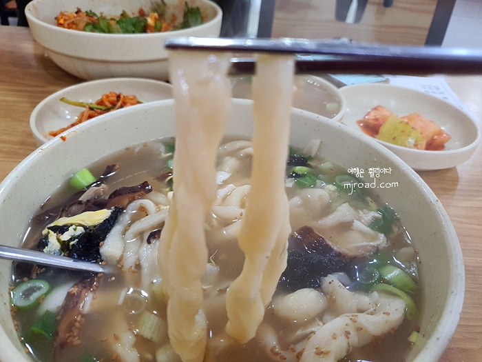 이곳 분식집의 칼국수는 정말 재미나요. 국수가 정말 굵고 어떤건 수제비처럼 두껍게 나올때도 있어요. 처음엔 이 칼국수를 먹으면서 이렇게 두꺼운데 익기나 했겠어? 라는 생각을 했었는데 직접 먹어보면 다 익었어요. 그게 더 신기해요.