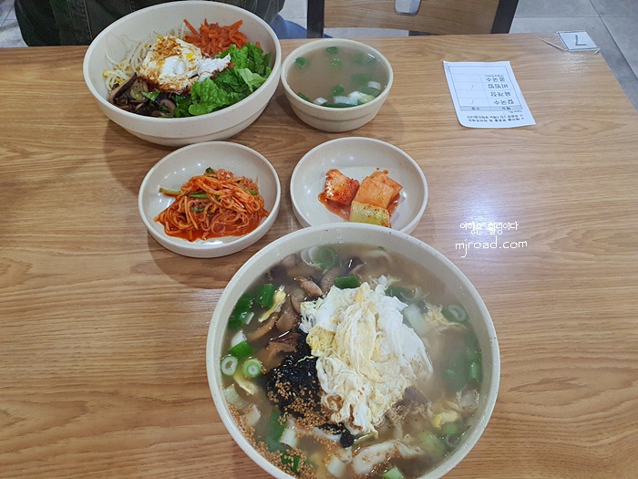 별거 없어 보이는 비빔밥이지만 2명이서 오면 대부분 비빔밥 하나 칼국수 하나 시켜서 나눠 먹어요.