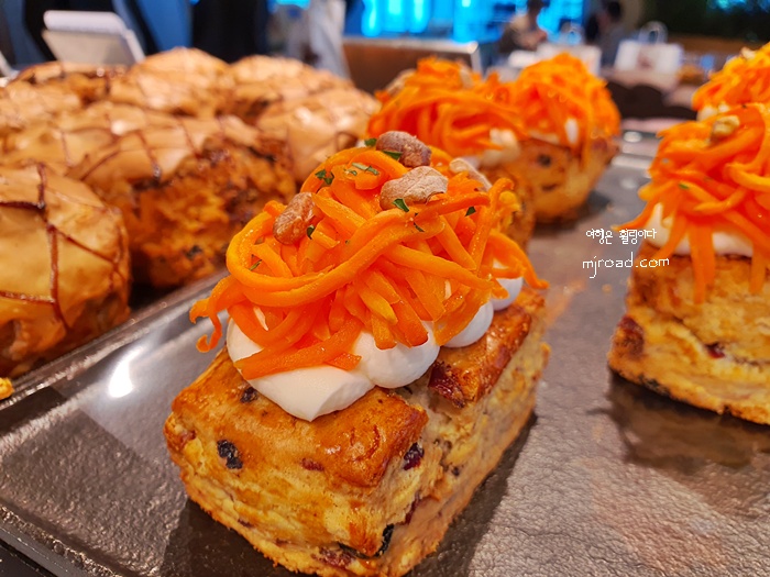 디저트로 손색이 없는 빵을 요즘 유행하는 라페를 올려서 만든 것이 사실 조금 이색적이긴 했다. 제주도 당근이야 전국에서 알아주니 맛도 있고 보기에도 좋다.