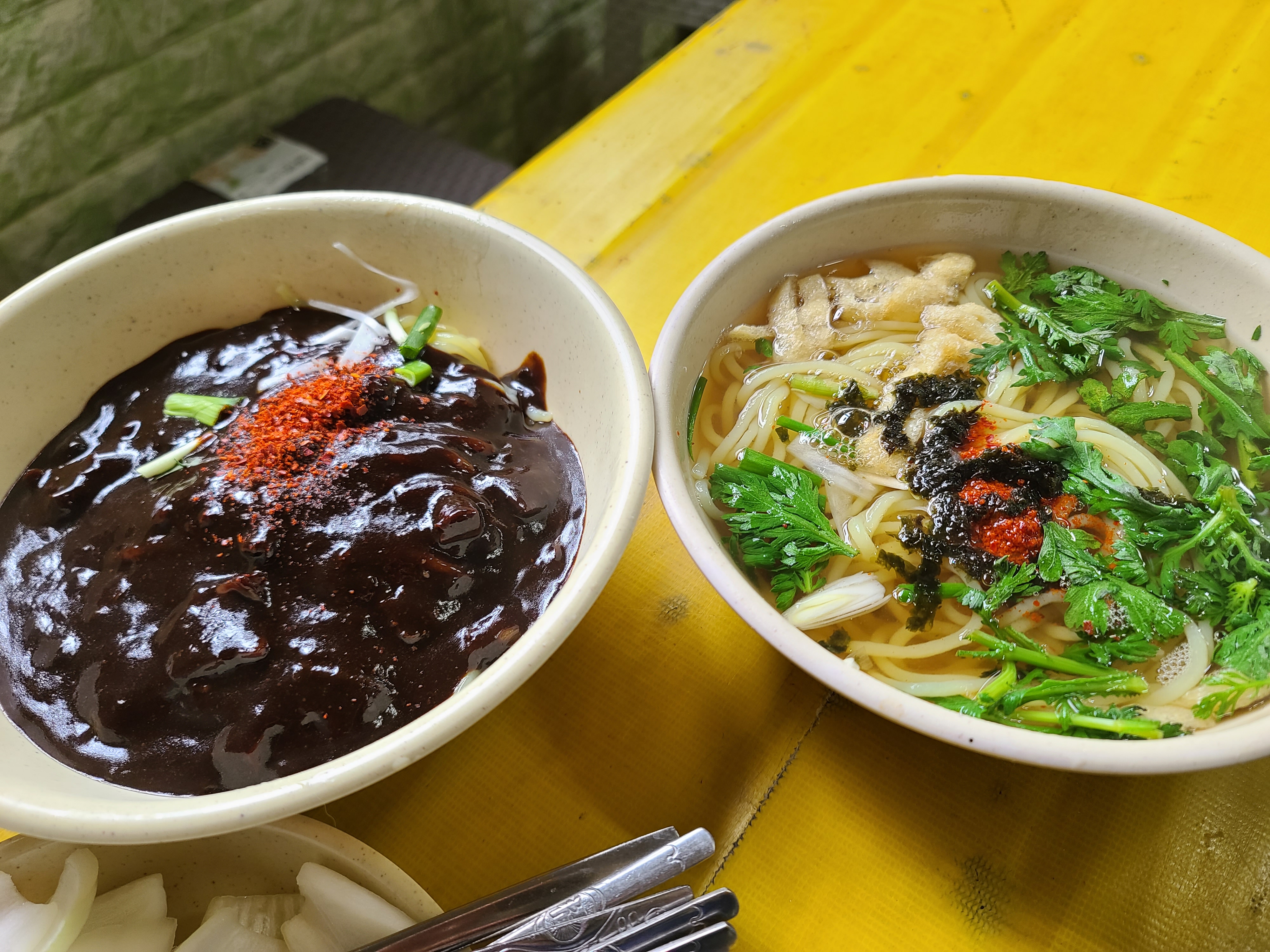 모두 셀프로 계산하고 반찬 뿐만 아니라 짜장면, 우동도 기다렸다 갖다 먹어야한다.