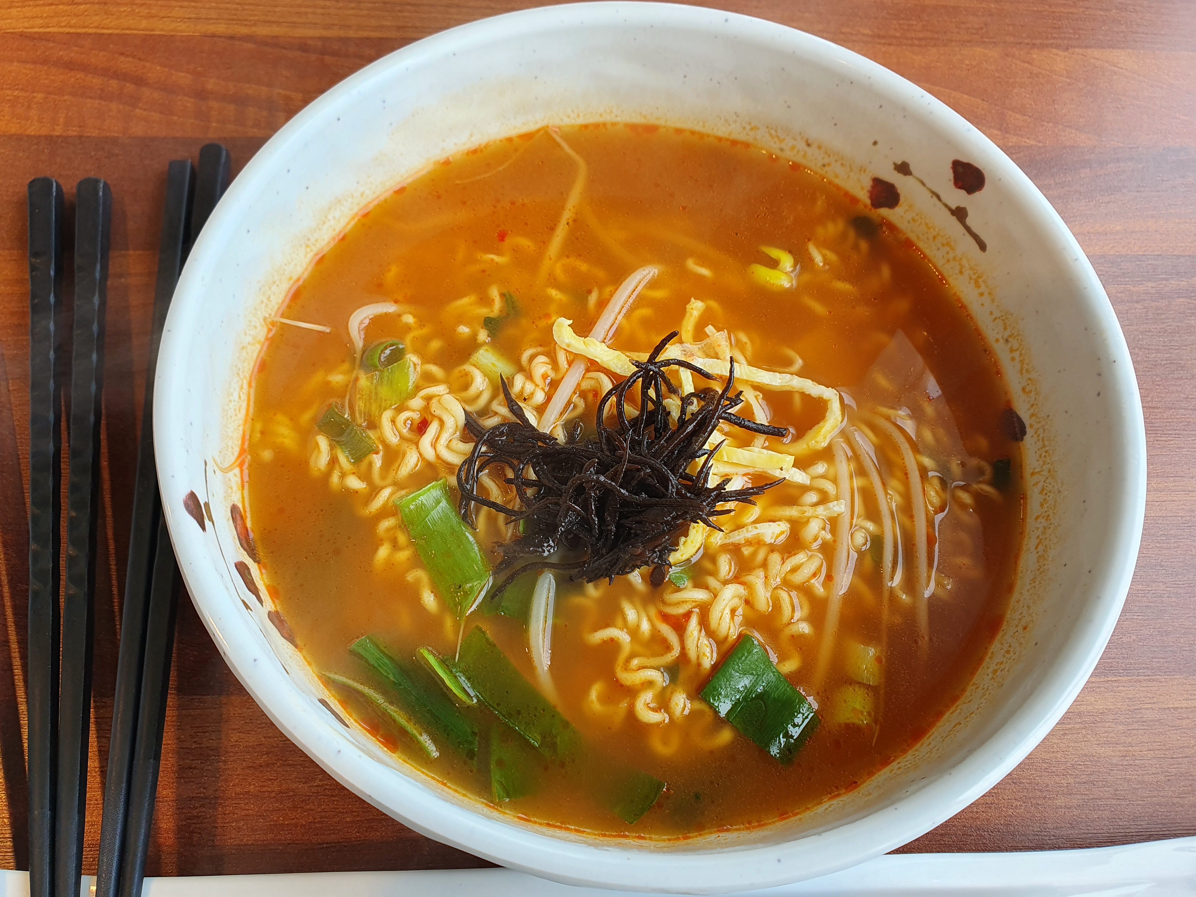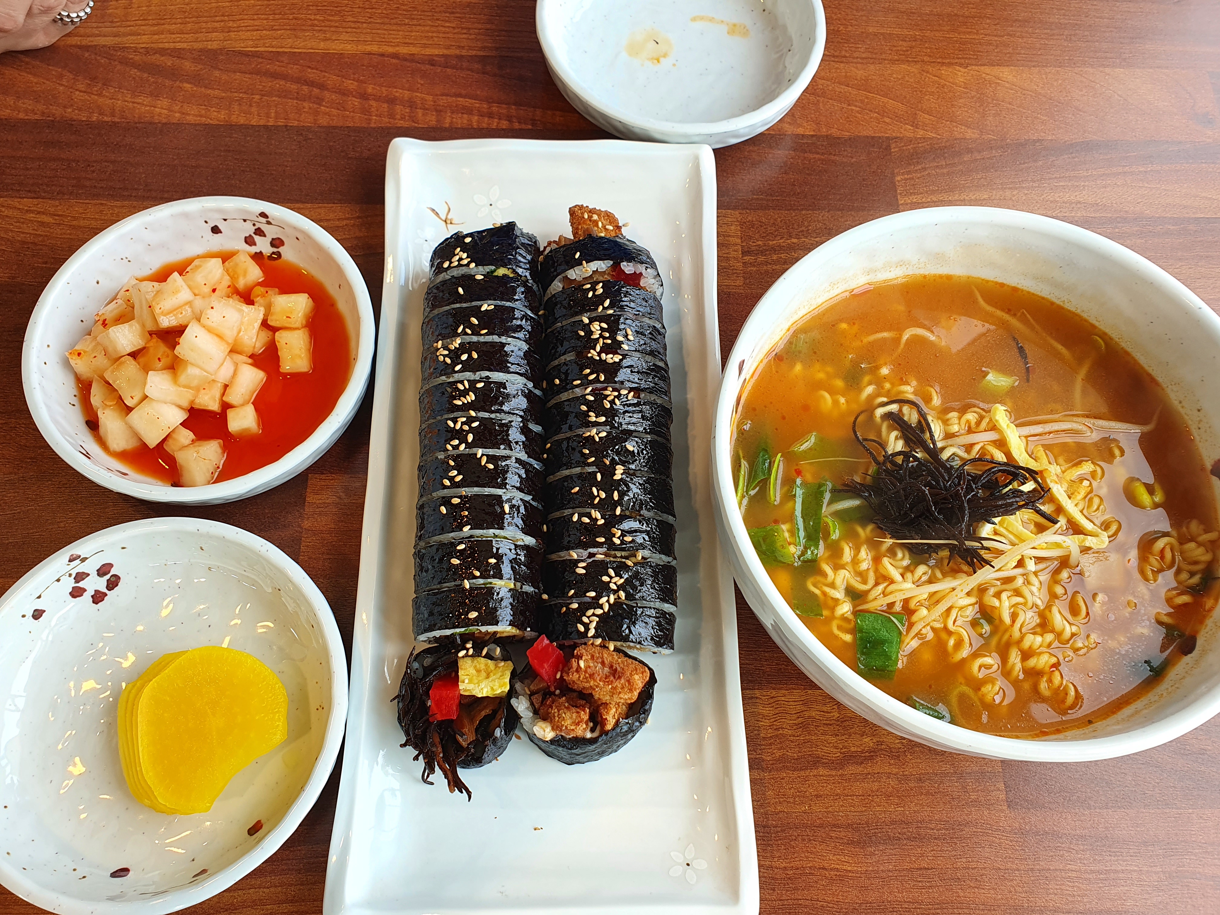 약간의 콩나물과 톳이 들어간 라면은 씹는 맛이 좋았어요. 김밥엔 라면이 진리죠.