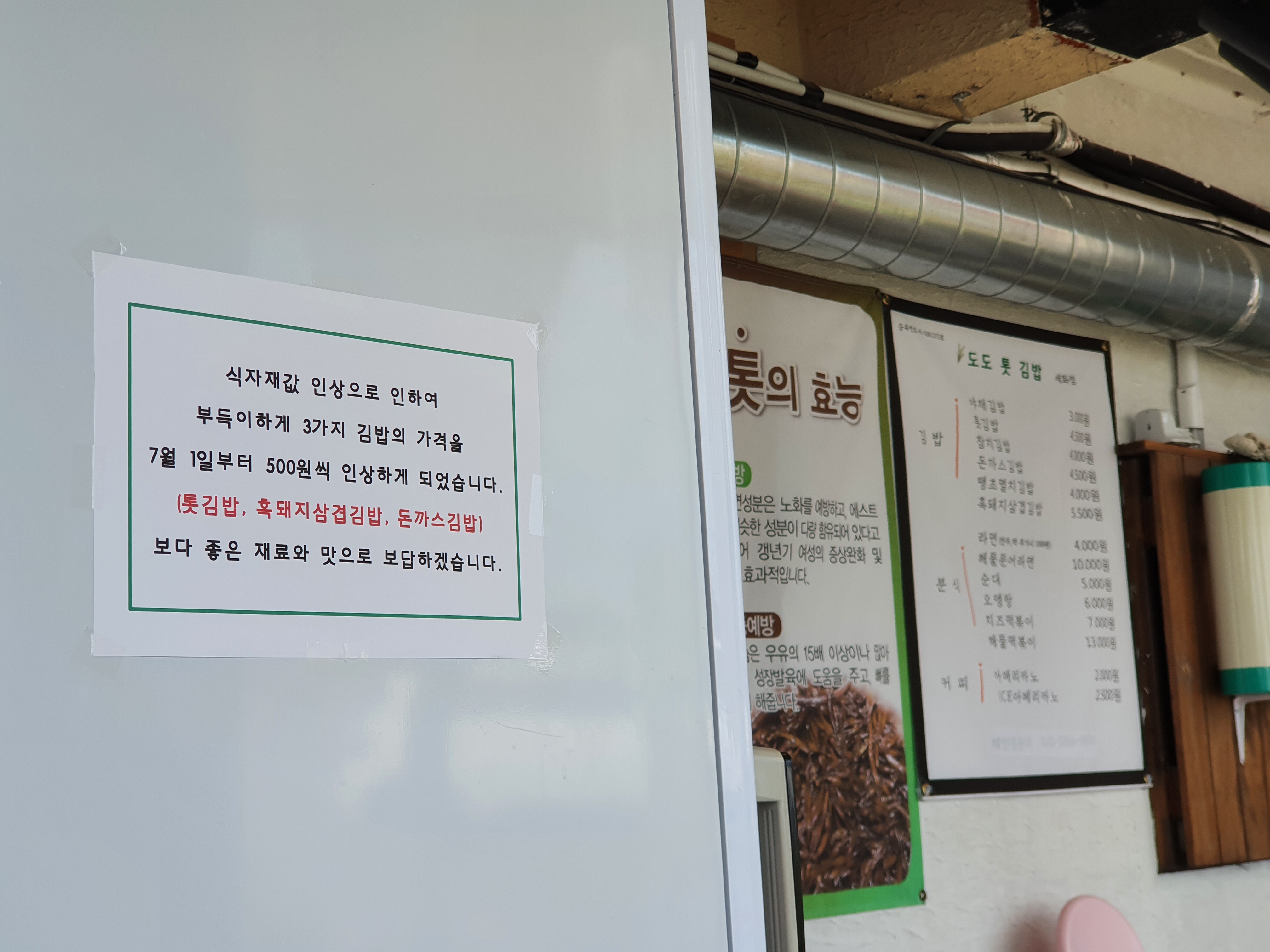 제주도는 어딜 가나 식자재값 인상으로 음식값들을 거의 다 올리고 있는 추세입니다. 안 오르는 곳들은 거의 착한 가격 업소이고요.