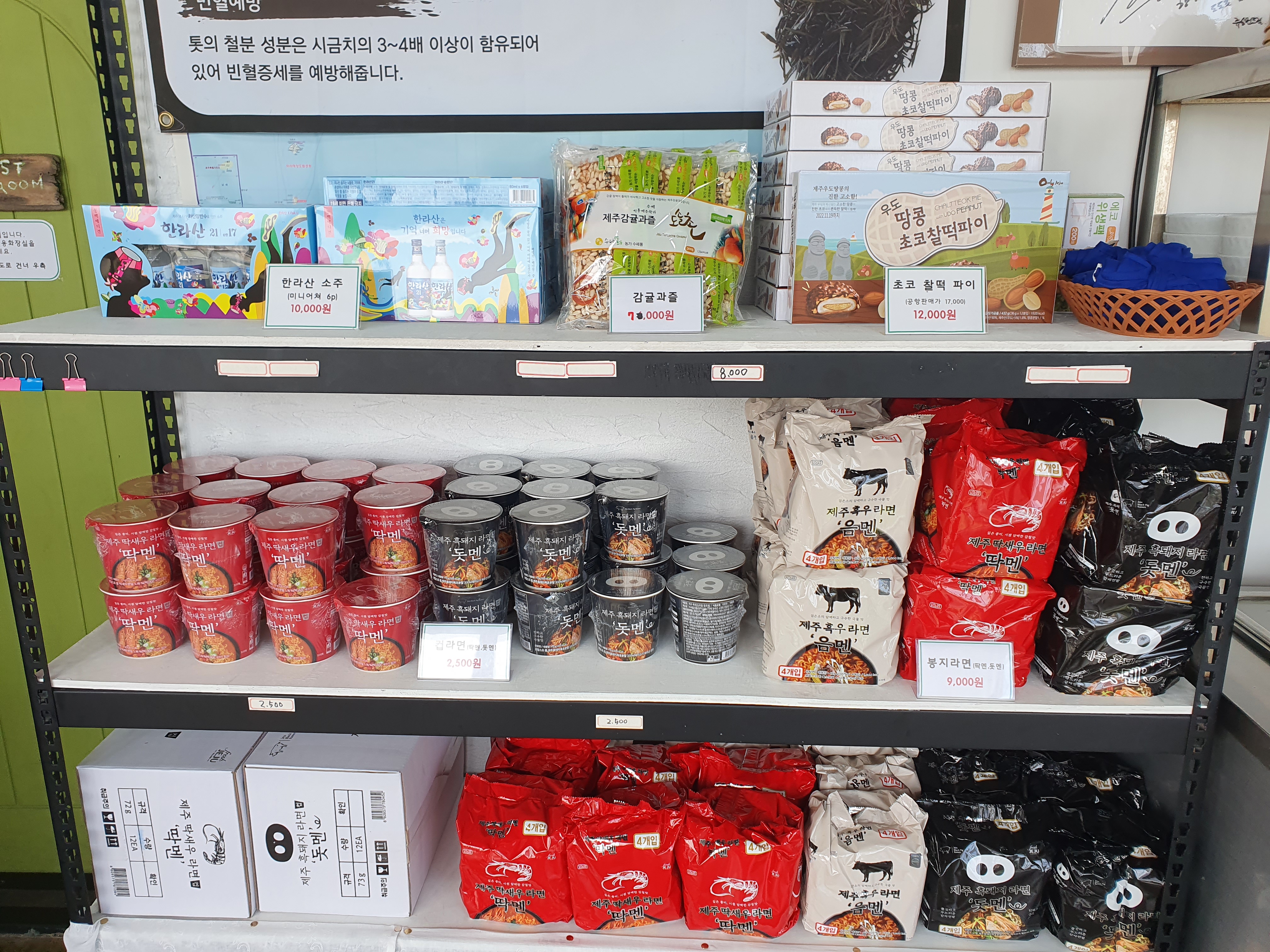 주문을 하고 물을 가지러 가다 본 펜트리에 제주에서 맛볼 수 있는 라면들이 있었는데 이름이 다 재밌더군요.