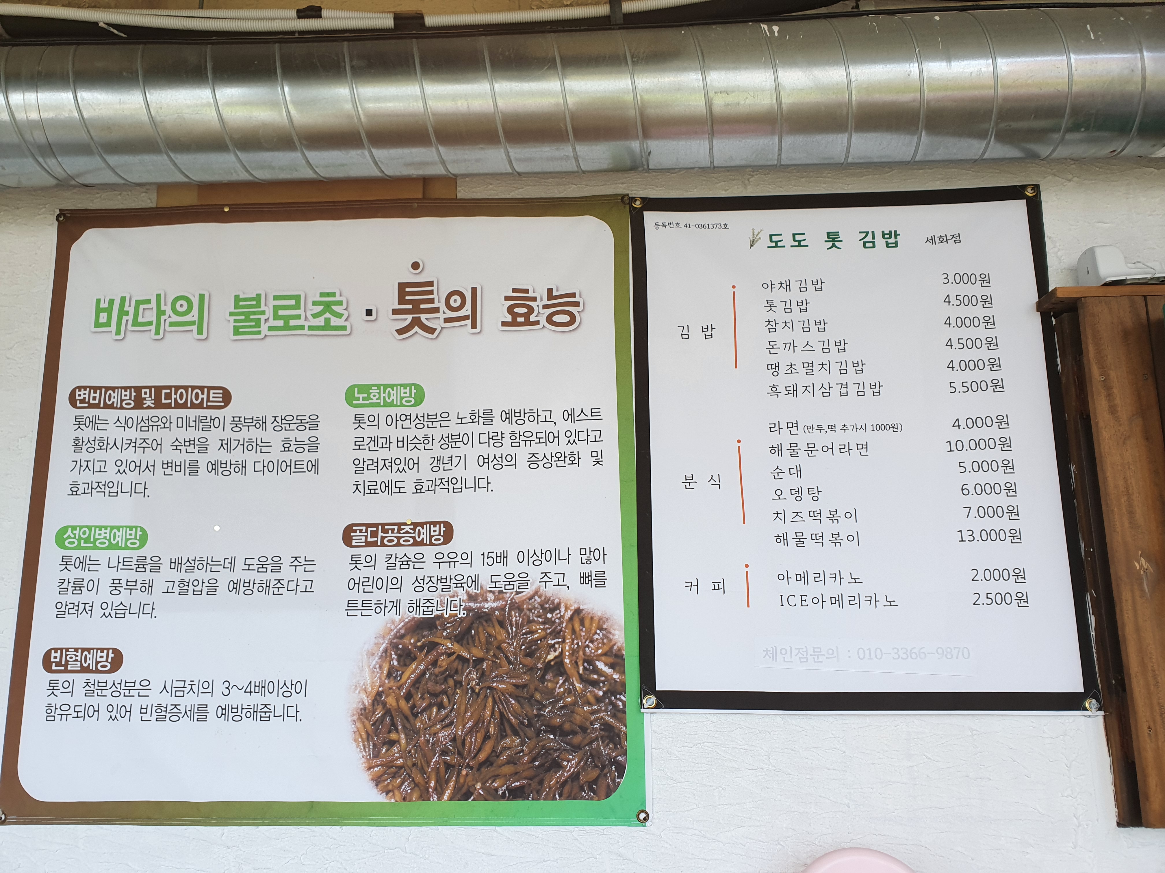 이곳은 ' 테마여행길 '에도 나온 음식점입니다. 가게 안은 그렇게 크지 않지만 김밥이 주 메뉴다 보니 인근에서 해수욕 즐기는 분들이 대부분 포장해 가시더군요.