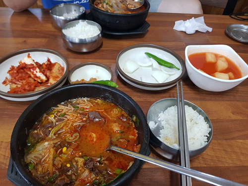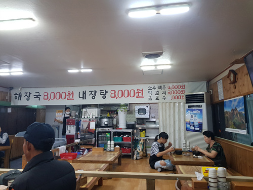 제주도 해장국으로 유명한 이곳은 주변에 항구가 있고 수산시장이 있어 제주도민 뿐만 아니라 관광객들도 많이 찾는 그런 곳입니다. 사실 예전엔 제주도민의 숨겨진 맛집으로도 유명한 곳이었지요. 이른 아침인데도 이미 많은 분들이 식사를 하고 계셨습니다. 대부분 인근 수산시장에서 일하시는 분들이더군요.