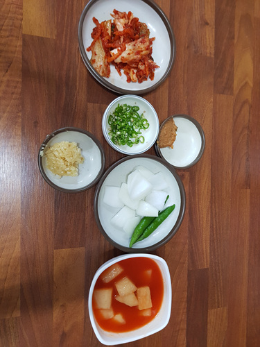 해장국에 같이 넣으라고 땡초 다진것과 마늘 다진 것을 줍니다.