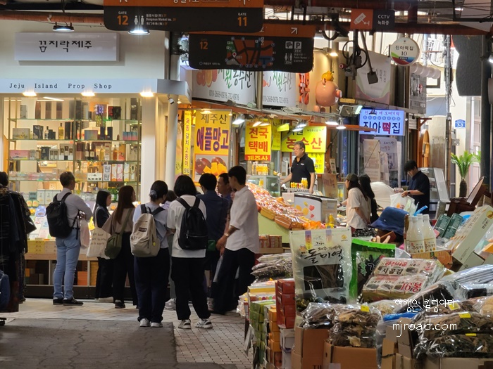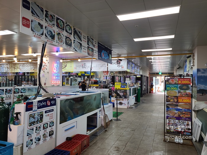 1층 주차장에 주차를 하고 약간의 계단을 내려가면 입구에 식당가가 있고 바로 옆은 떡집, 선물가게등 재래시장 곳곳을 구경할 수 있는 골목이 나온다. 경기가 안 좋아서 그런지 손님은 예전처럼 많지는 않았지만 동네 장사에 비하면 이곳은 그나마 관광객들이 찾아가는 식당가이다.