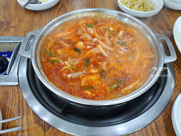 별거 없어 보이지만 이렇게 냄비에 나온 것을 끓이기만 하면 입맛을 자극하는 낙지볶음이 된다. 맵기 조절이 가능하기에 주문할때 미리 말하면 알아서 양념을 넣어 준다.