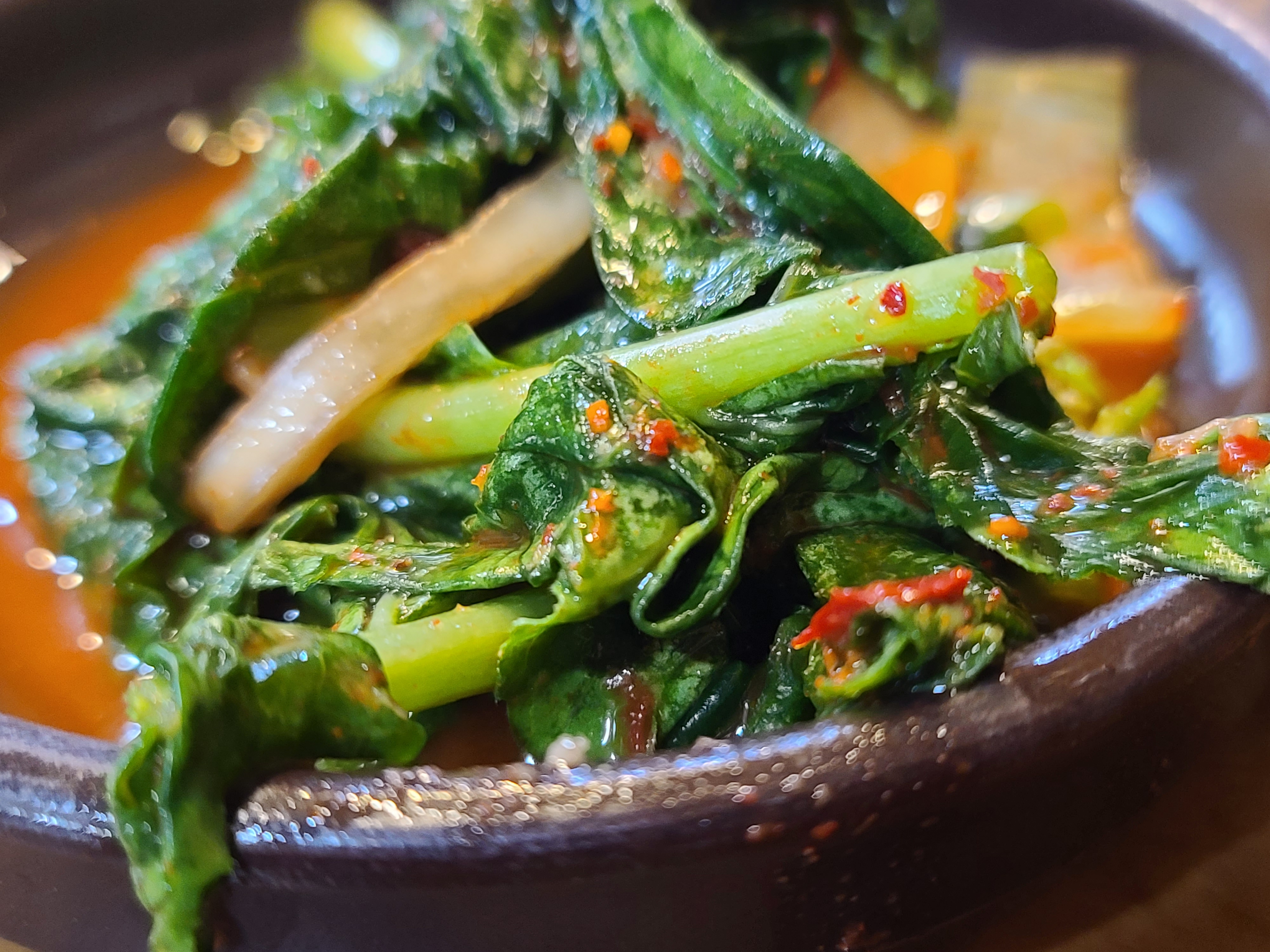 기본적인 나물 반찬 4가지가 먼저 테이블에 놓이고 넓은 대접에 밥이 나온다. 그냥 비빔밥으로 먹어도 맛있지만 순두부와 청국장이 뚝배기에 보글보글 끓여 나오기에 같이 비벼 먹으면 마파람에 게눈 감추듯 순식간에 해치우게 된다.