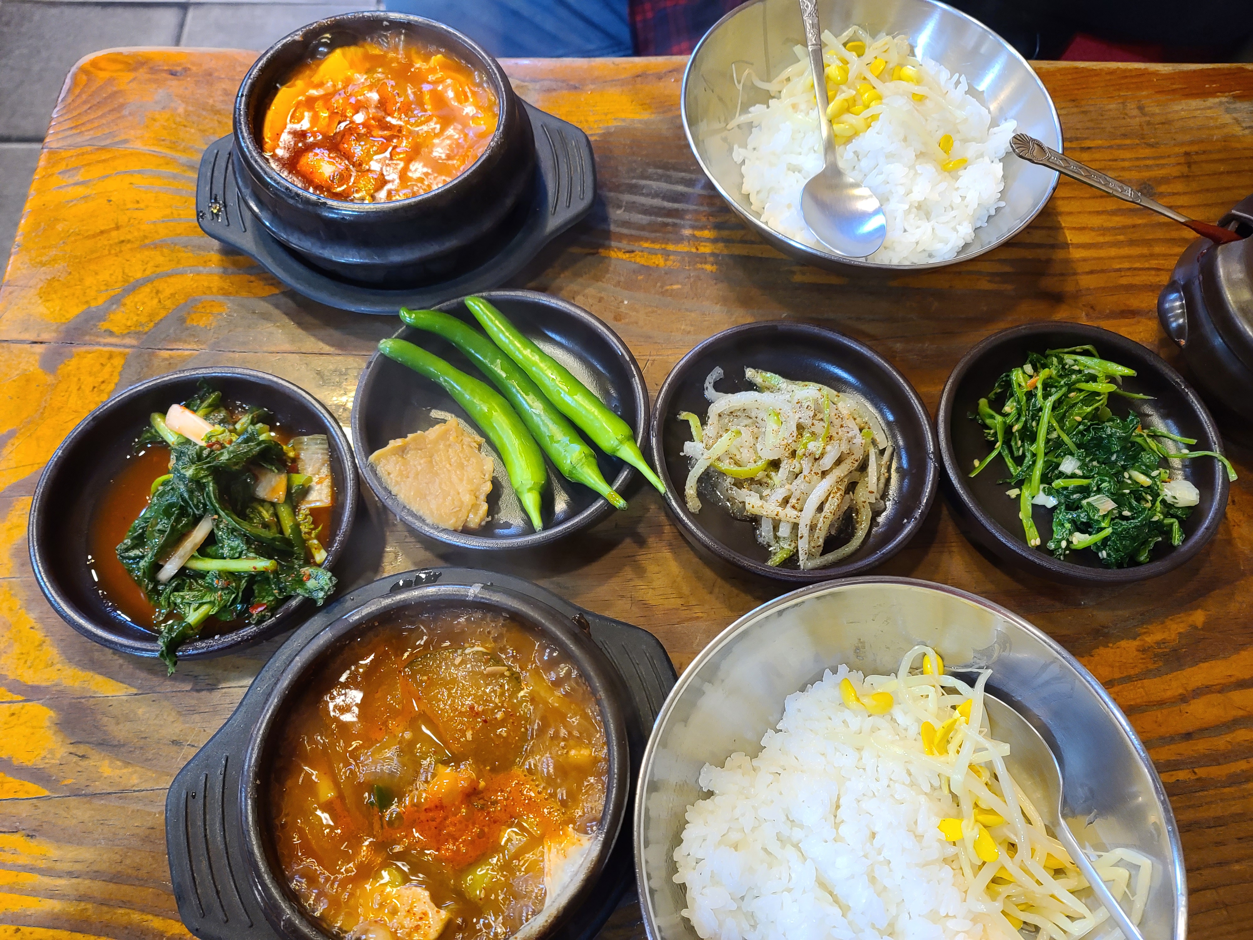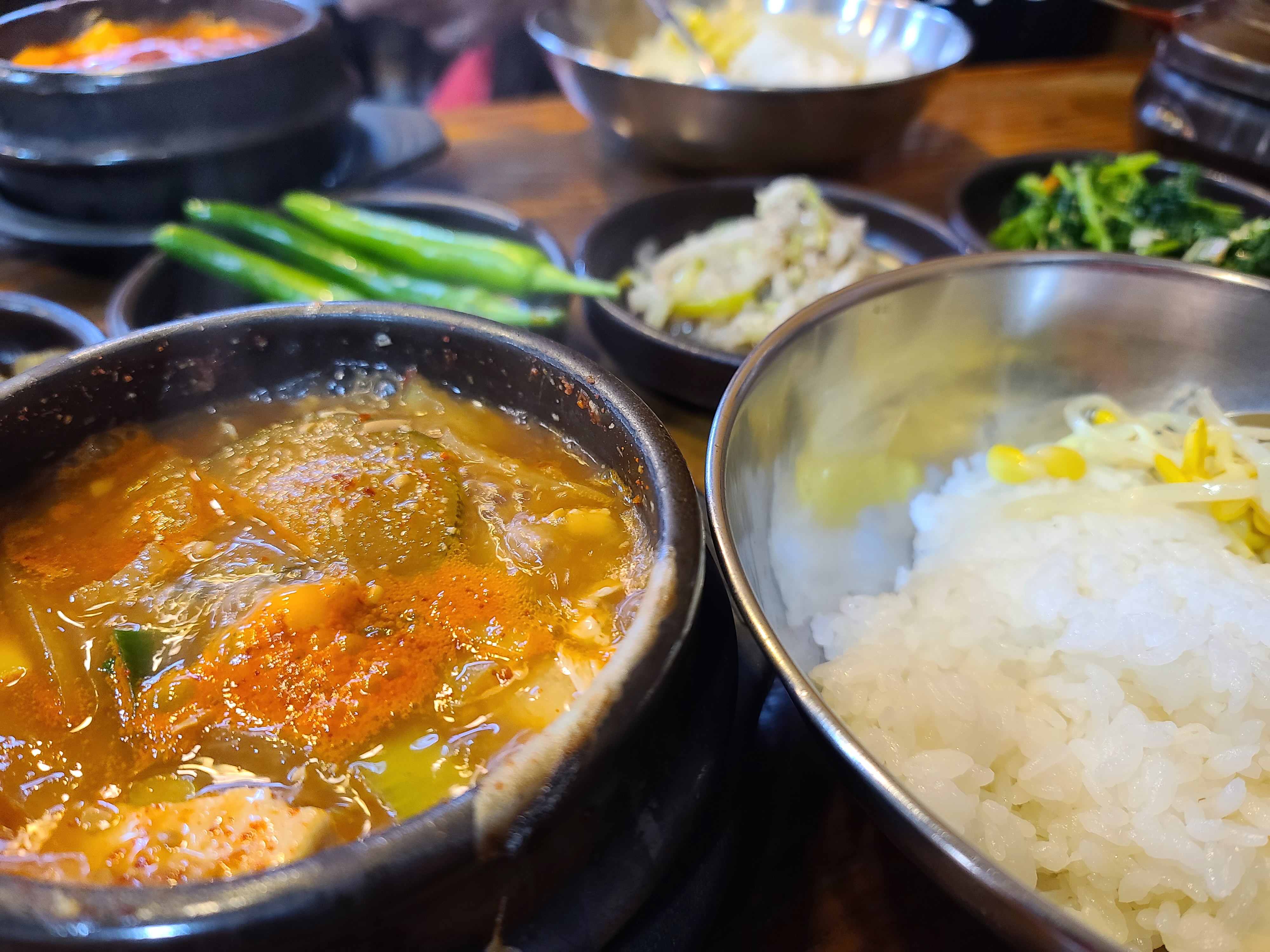 단돈 7,000원 ~8,000원이면 순두부 청국장등 메뉴를 골라 먹을 수 있을 정도로 저렴하다. 반찬은 시골 할머니댁에서 봤을법한 그런 촌냄새 폴폴나는 정겨운 반찬이 나오고 깔끔하고 맛있다.