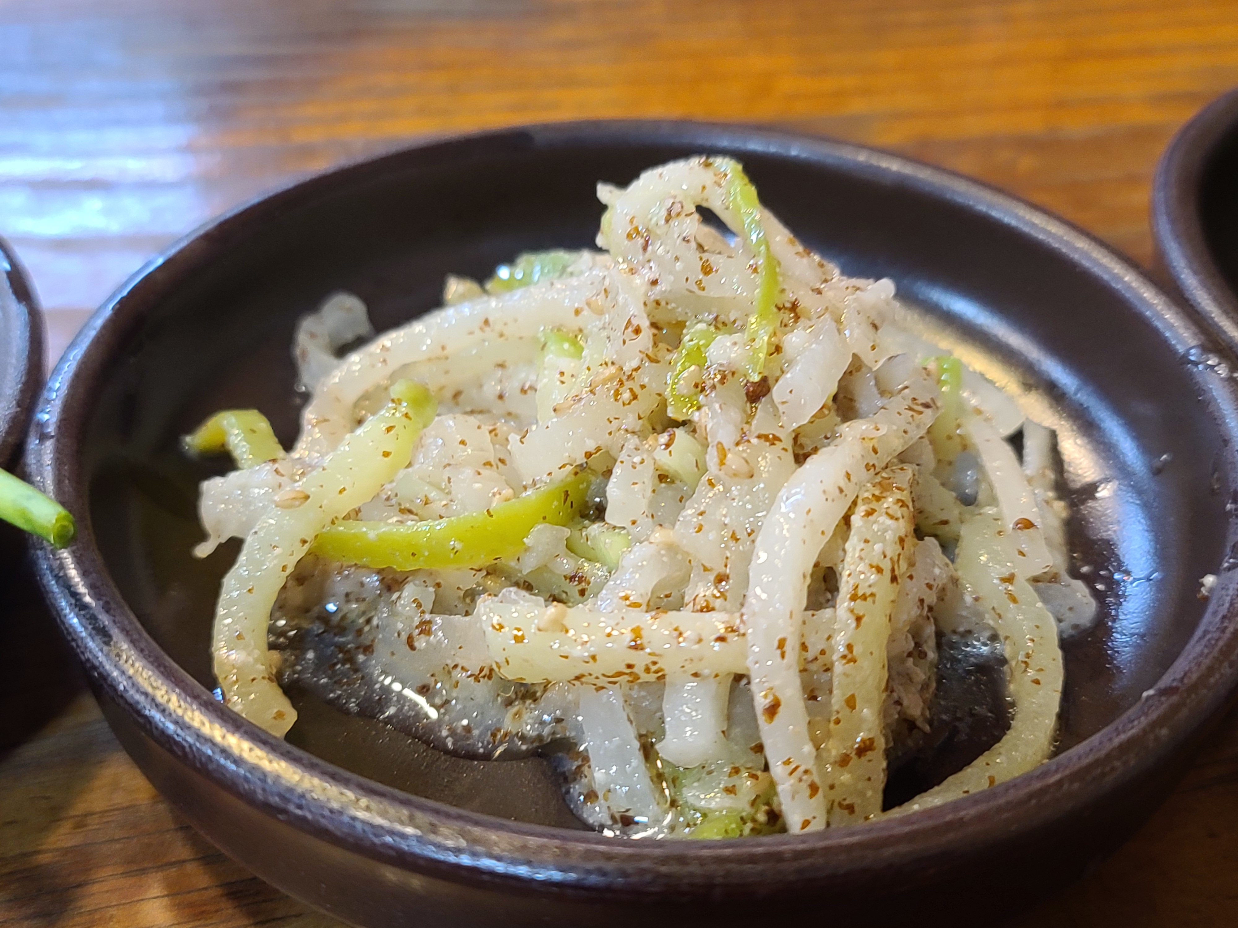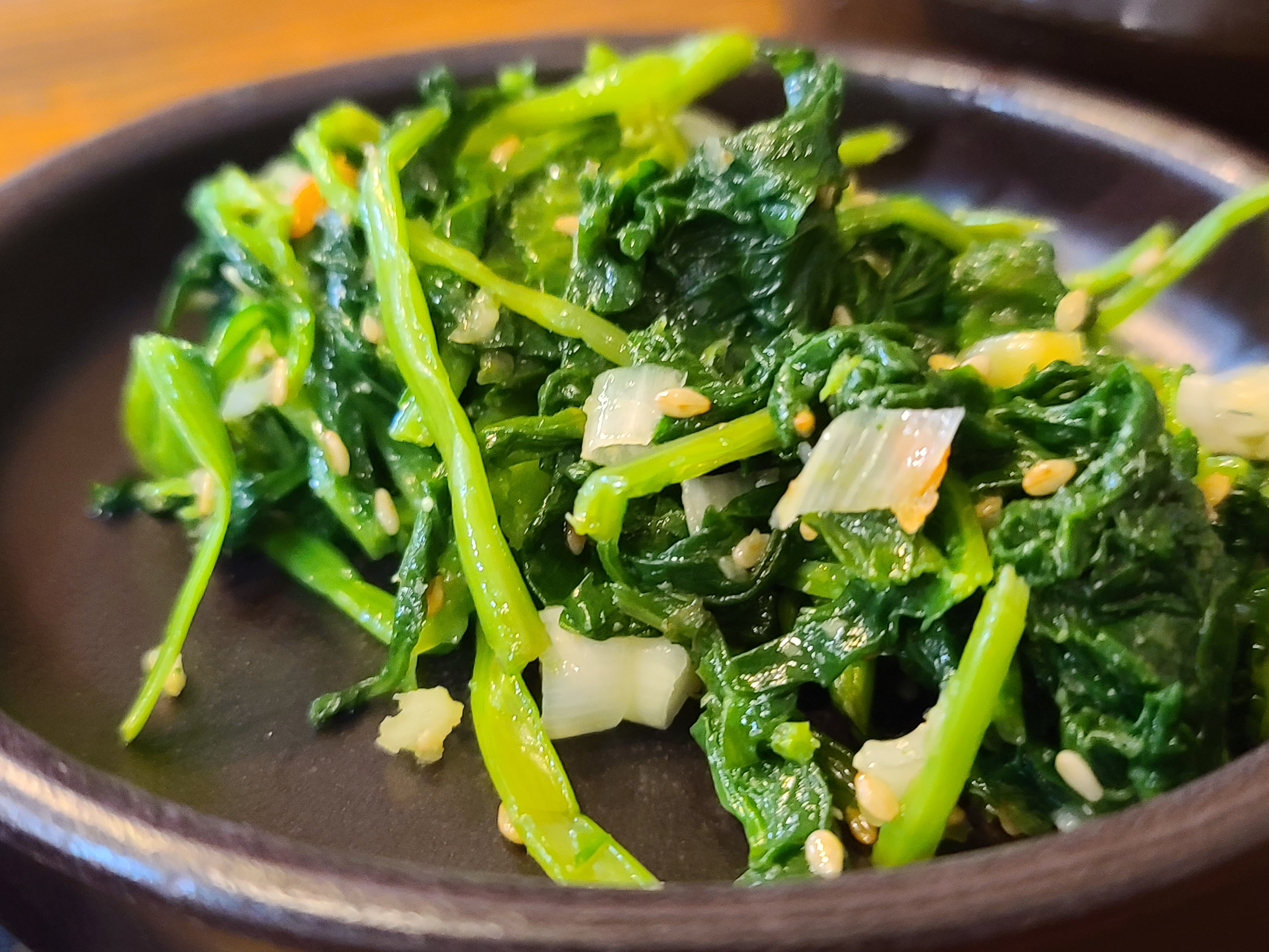 세월이 느껴지는 오래된 테이블에 손맛 가득한 음식들이 가득 채워져 보는 것만큼 배가 든든하게 불러 나올 수 있는 곳이다. 참고로 테이블에는 무생채 나물도 따로 반찬통에 담겨 있어 밥에 넣어 비빔밥으로 먹으면 한마디로 꿀맛이다.