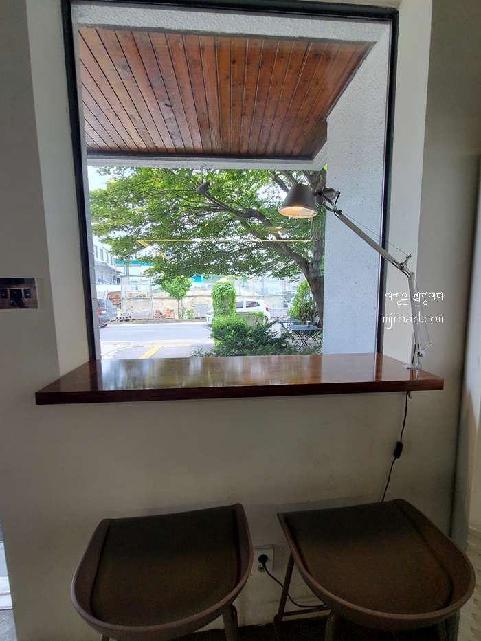 외관 형태는 지구대 모습 그대로이지만 곳곳에 리모델링 한 흔적을 엿 볼 수 있다. 입구 마당에는 테이블 몇 개가 놓여 있었고 주차도 가능했다. 입구에 들어서면 큰 창이 눈에 띈다. 가까이서 보면 그냥 커피숍의 모습이긴 하지만 전체적으로는 엄연히 지구대의 모습 그대로이다.