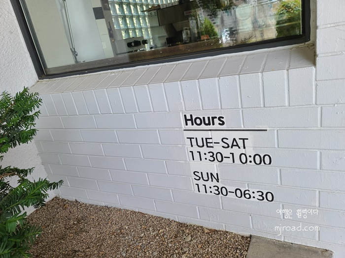 일요일은 오전 11시 30분~ 새벽 6시 30분까지 영업을 하는건가?! 하여간 월요일은 휴무인 그것만 참고해 가면 될 것 같다.