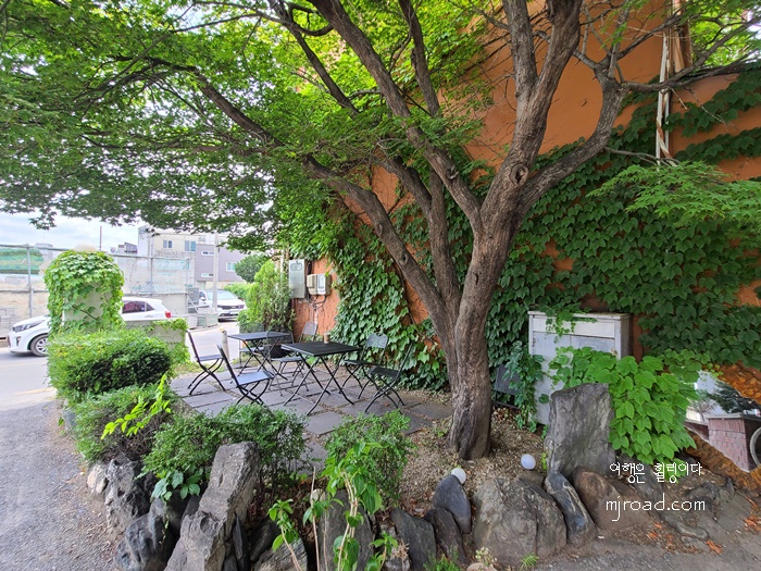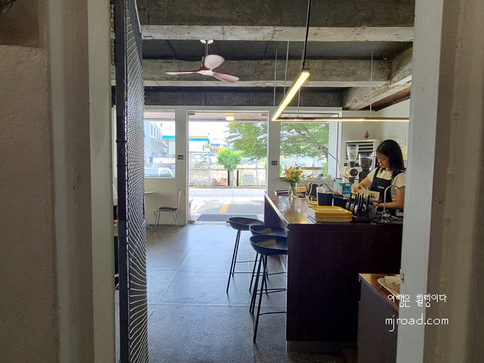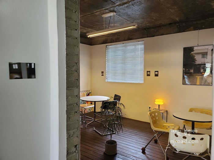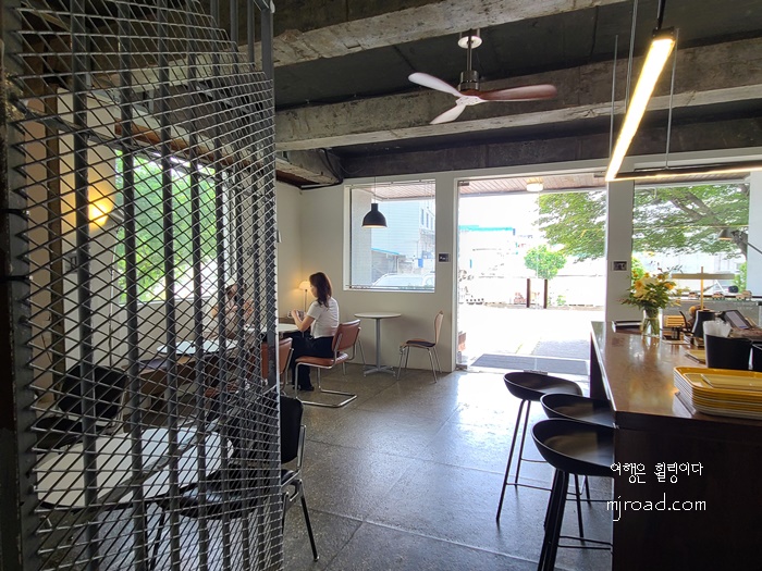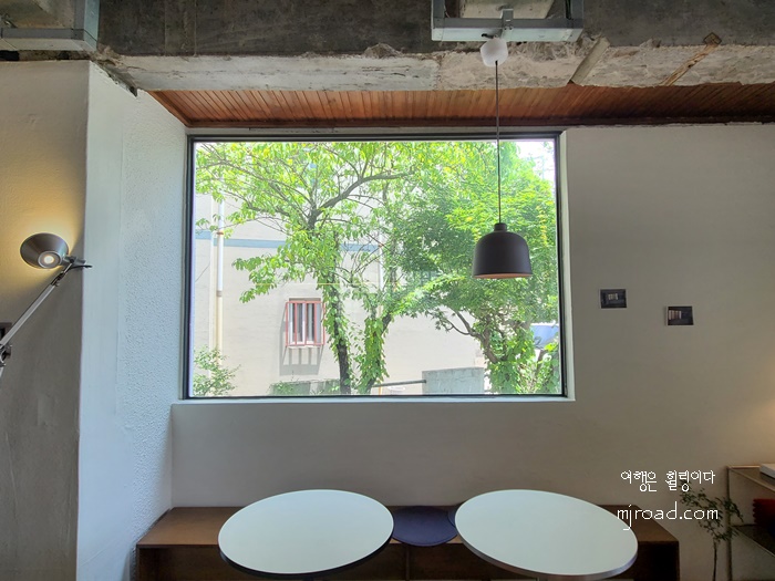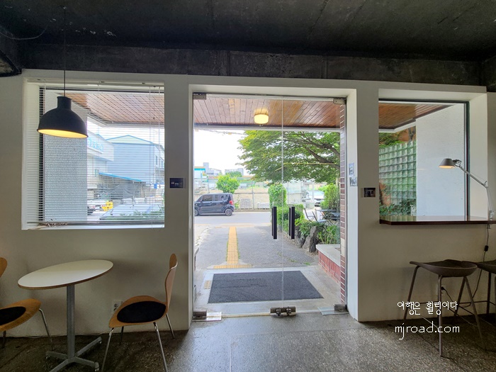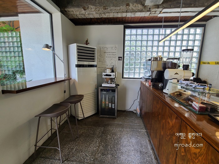 외관 형태는 지구대 모습 그대로이지만 곳곳에 리모델링 한 흔적을 엿 볼 수 있다. 입구 마당에는 테이블 몇 개가 놓여 있었고 주차도 가능했다. 입구에 들어서면 큰 창이 눈에 띈다. 가까이서 보면 그냥 커피숍의 모습이긴 하지만 전체적으로는 엄연히 지구대의 모습 그대로이다.